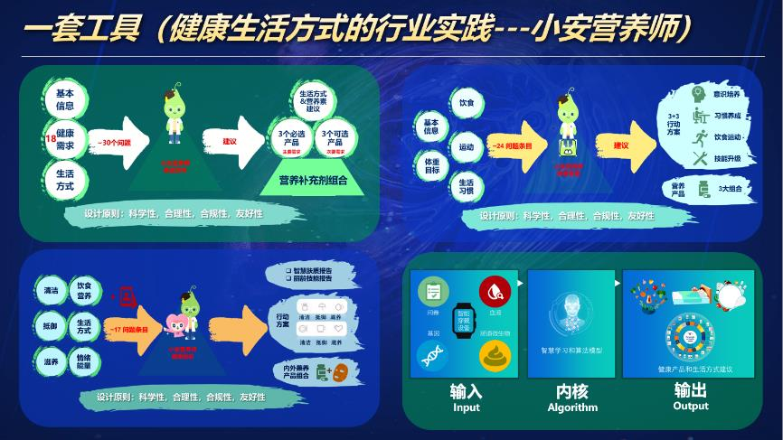 基于“美好生活之花”体系,安利启动了 “Diet2Me”科学研究,研发了个性化营养管理平台“小安营养师”微信小程序,根据血液标志物、基因型、肠道微生物等多维度信息,给予消费者科学、合理、友好可行的健康生活方式建议。