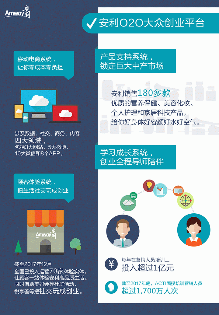 3、与单纯的移动互联相比,基于直销的人联网具有更强的粘性。安利打造的O2O大众创业平台,将线下的人联网与线上互联网结合,大幅提升了生产力和用户体验,是具有广阔发展前景的优质事业机会平台。